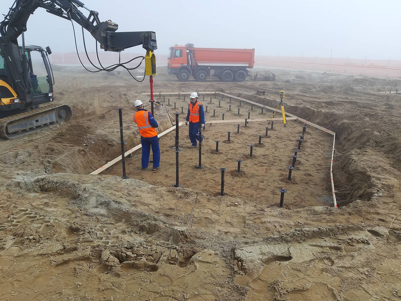 La precisione dell’installazione, con tolleranze di soli +/- 5 mm, e i successivi test di compressione e stabilità hanno confermato l’integrità e la sicurezza delle fondazioni.