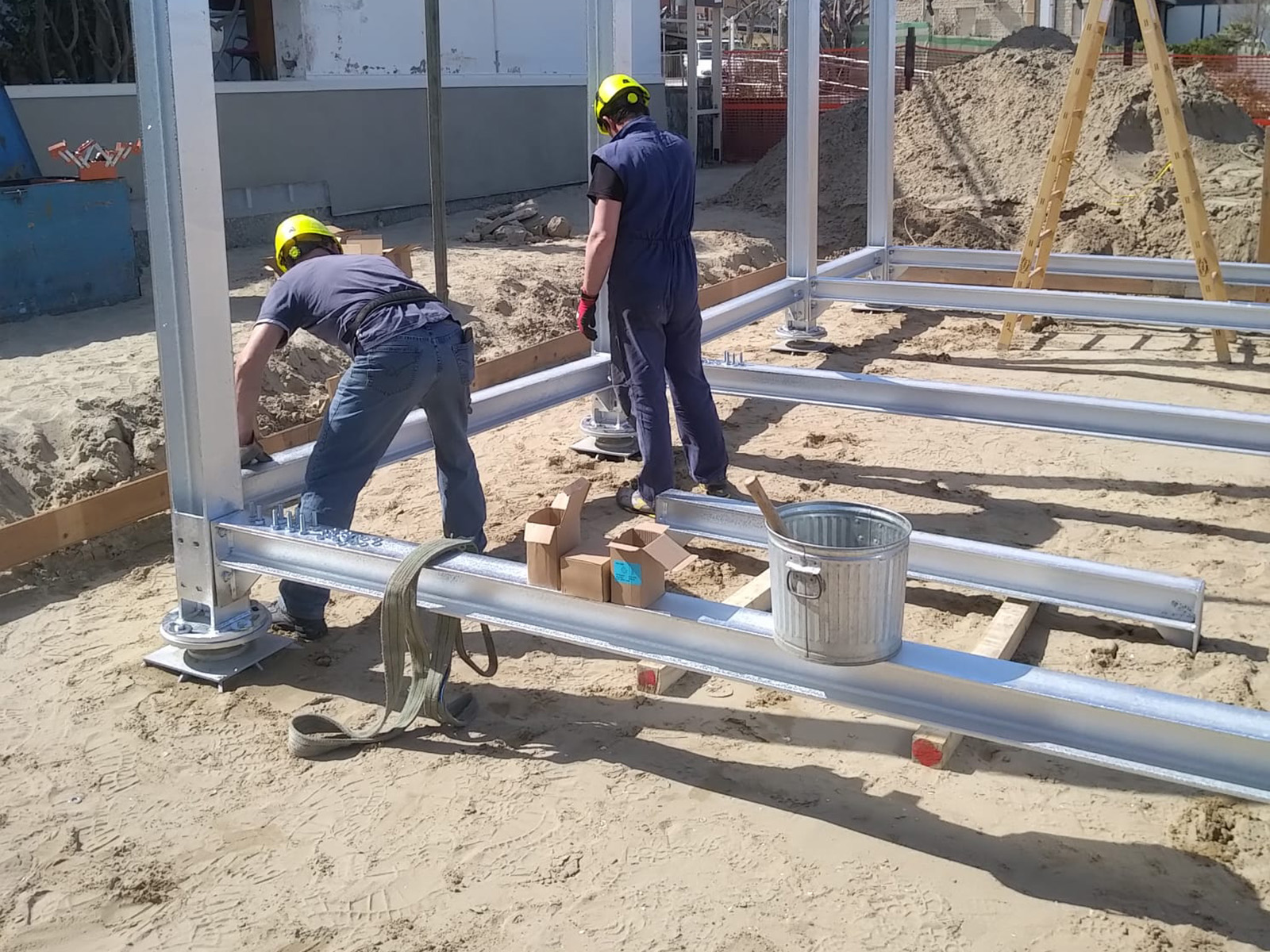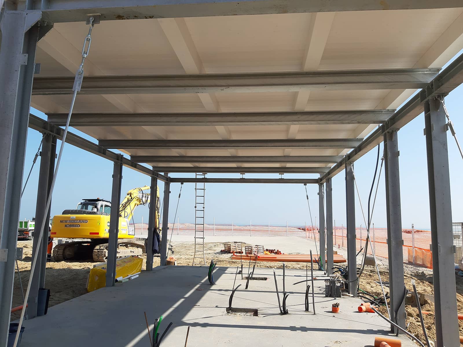 La posa in opera delle strutture aeree, comprese pilastri e travi di collegamento in acciaio zincato, è stata eseguita con la stessa precisione e professionalità, assicurando la tempestività nella consegna dei lavori strutturali.
